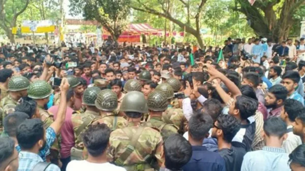 বগুড়া প্রতিনিধি : বগুড়া সরকারি আজিজুল হক কলেজে মতবিনিময় করতে পারেননি বৈষম্যবিরোধী ছাত্র আন্দোলনের কেন্দ্রীয় সমন্বয়ক মাহিন সরকার। এ সময় তাকে দেখে ভুয়া ভুয়া স্লোগান দিতে দেখা যায় শিক্ষার্থীদের। বৃহস্পতিবার
