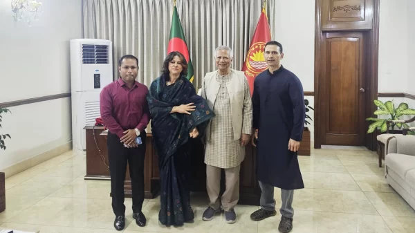 ডেস্ক রিপোর্ট : প্রধান উপদেষ্টা ড. মুহাম্মদ ইউনূসের সঙ্গে দেখা করেছেন বাংলাদেশের প্রথম প্রধানমন্ত্রী তাজউদ্দীন আহমদের সন্তান শারমিন আহমেদ ও সোহেল তাজ। বৃহস্পতিবার (১৭ জুলাই) রাষ্ট্রীয় অতিথি ভবন যমুনায় তাদের