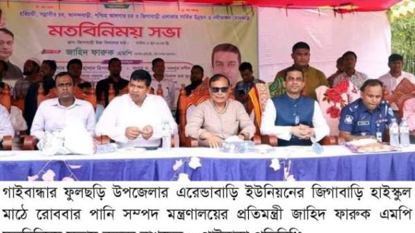 ওবাইদুল ইসলাম, গাইবান্ধা : পানি সম্পদ মন্ত্রনালয়ের প্রতিমন্ত্রী জাহিদ ফারুক এমপি বলেছেন, গাইবান্ধার ব্রহ্মপুত্রের ভাঙ্গন কবলিত ফুলছড়িবাসির দাবি প্রেক্ষিতে নদী ভাঙ্গন প্রতিরোধে অচিরেই প্রতিরক্ষা বাঁধ নির্মান করা হবে। এতে করে