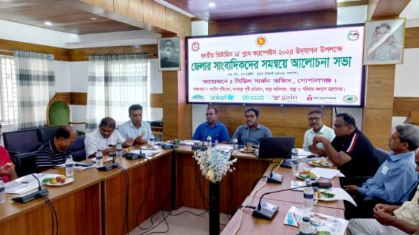 কে এম সাইফুর রহমান, গোপালগঞ্জঃ গোপালগঞ্জে জাতীয় ভিটামিন ‘এ’ প্লাস ক্যাম্পেইন-২০২৪ উপলক্ষে সাংবাদিকদের সমন্বয়ে আলোচনা সভা অনুষ্ঠিত হয়েছে। আগামী ১ জুন শনিবার সকাল ৮টা থেকে শুরু হয়ে বিকাল ৪টা পর্যন্ত