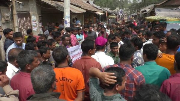 পলাশবাড়ীতে সন্ত্রাসী হামলার প্রতিবাদে দোকান বন্ধ করে অর্ধ বেলা অবরোধ