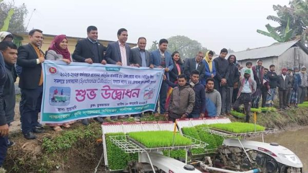 কালীগঞ্জে রাইস ট্রান্সপ্লান্টার যন্ত্রের সাহায্যে ধানের চারা রোপনের শুভ উদ্বোধন