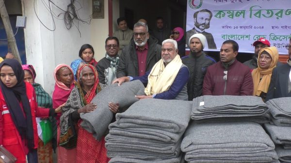 গাইবান্ধায় শীতার্ত মানুষের মাঝে রেড ক্রিসেন্ট সোসাইটির কম্বল বিতরণ