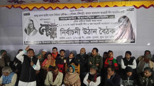নিজস্ব প্রতিবেদক : মুন্সীগঞ্জের লৌহজং উপজেলার বেজগাঁও ইউনিয়নে মৃধা বাড়ীর মাঠ প্রাঙ্গনে নৌকার প্রতীকের উঠান বৈঠকের আয়োজন করা হয়েছে। বুধবার সন্ধ্যা সাড়ে ৬ টার সময় এই উঠান বৈঠকের আয়োজন করেন
