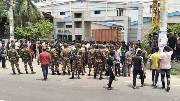 কুষ্টিয়ায় ১০ দফা দাবিতে কিয়াম ও এমআরএস কারখানার শ্রমিকদের কর্মবিরতি