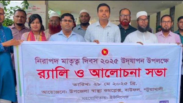 কহিনুর বেগম,পটুয়াখালী :পটুয়াখালী জেলার বাউফল উপজেলার ইউনিসেফের সহযোগিতায় জাতীয় পুষ্টি সপ্তাহ ও মাতৃত্ব দিবস পালিত হয়েছে। ২৮.০৫.২৫ইং তারিখ রোজ বুধবার সকাল ১০টার দিকে উপজেলা স্বাস্থ্য কমপ্লেক্স চত্বর থেকে একটি র্যালি