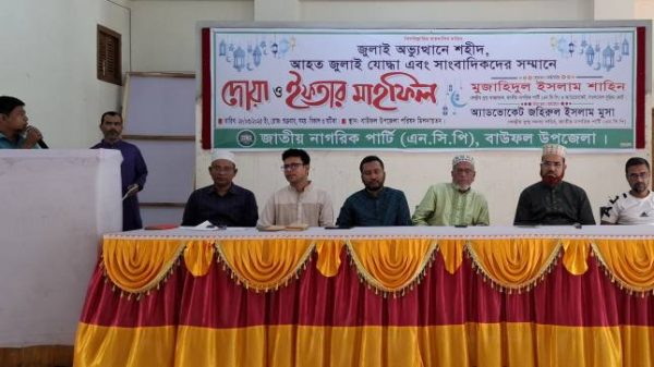 কহিনুর বেগম,পটুয়াখালী: পটুয়াখালী জেলার বাউফল উপজেলায় জাতীয় নাগরিক পার্টি(এন সি পি) আয়োজনে জুলাই অভ্যুত্থানে শহীদ,আহত জুলাই যোদ্ধা এবং সাংবাদিকদের সম্মানে দোয়া ও ইফতার মাহফিল অনুষ্ঠিত হয়েছে। ২৮.০৩.২৫ইং তারিখ রোজ শুক্রবার
