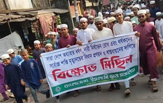 কহিনুর বেগম, পটুয়াখালী: পটুয়াখালী জেলার বাউফল উপজেলায় সারাদেশে অব্যাহত ধর্ষণ, নারী নির্যাতনরোধ এবং ধর্ষকদের সর্বোচ্চ শাস্তি মৃত্যুদন্ডের বিধান প্রণয়ন ও বাস্তবায়নের দাবিতে বিক্ষোভ মিছিল অনুষ্ঠিত হয়েছে। মঙ্গলবার বিকাল চারটার দিকে