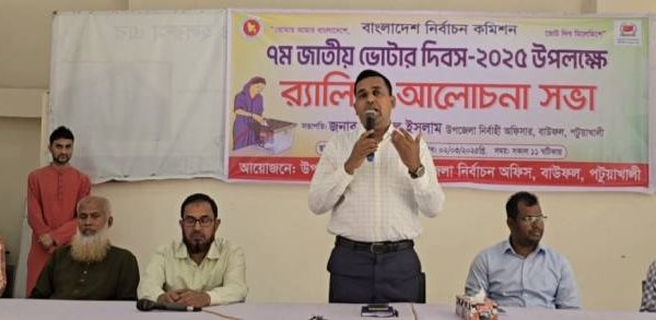 কহিনুর বেগম, পটুয়াখালী : পটুয়াখালী জেলার বাউফল উপজেলায় ৭ম জাতীয় ভোটার দিবস উপলক্ষে র ্যালী ও আলোচনা সভা অনুষ্ঠিত হয়েছে। রবিবার সকাল ১১টায় উপজেলা পরিষদ চত্বরের ভিতরে র্যালী শেষে পরিষদ