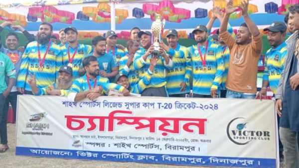 মোঃ সাইফুল ইসলাম, দিনাজপুর : দিনাজপুরের বিরামপুরে গত শুক্রবার বিকেলে শাইখ স্পোর্টস লিজেন্ড সুপার কাপ টি-২০ ক্রিকেটের মেগা ফাইনাল ও পুরস্কার বিতরণী অনুষ্ঠিত হয়েছে। বিরামপুর পৌর শহরের ইসলামপাড়া আনসার মাঠে