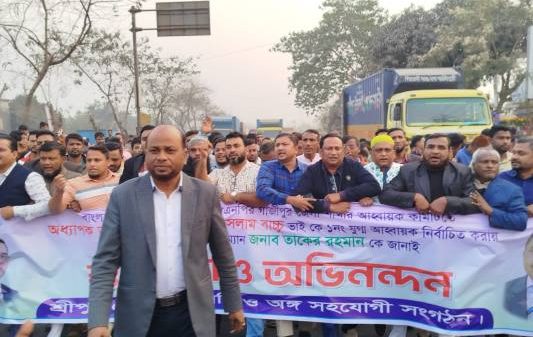শ্রীপুরে শ্রমিক দলের আনন্দ মিছিল ও মিষ্টি বিতরণ