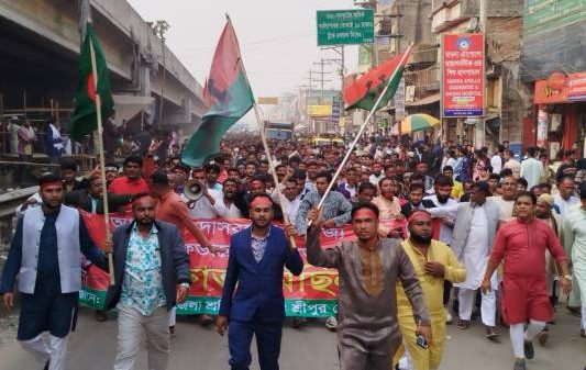 শ্রীপুর উপজেলা ও পৌর শ্রমিক দলের উদ্যোগে বিক্ষোভ মিছিল