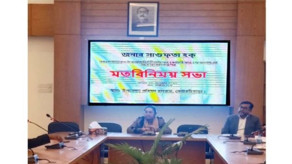 স্টাফ রিপোর্টার : গোপালগঞ্জের কোটালীপাড়ায় নব যোগদানকৃত উপজেলা নির্বাহী অফিসার (ইউএনও) সাগুফতা হক এর সাথে উপজেলায় কর্মরত সাংবাদিকদের মত বিনিময় সভা অনুষ্ঠিত হয়েছে। এ উপলক্ষে সোমবার বেলা ১১ টায় হলরুম