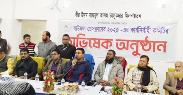 কহিনুর বেগম, পটুয়াখালী : পটুয়াখালী জেলার বাউফল প্রেসক্লাবের ২০২৫ সালের কার্যনির্বাহী কমিটির অভিষেক অনুষ্ঠিত হয়েছে। শুক্রবার বেলা সাড়ে ১১টার দিকে প্রেসক্লাবের বীর উত্তম সামসুল আলম তালুকদার মিলনায়তনে এ অভিষেক অনুষ্ঠিত