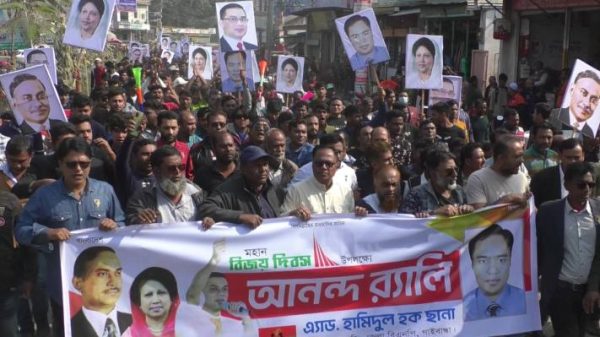 ওবাইদুল ইসলাম, গাইবান্ধা : মহান বিজয় দিবস উপলক্ষে জেলা বিএনপি সাবেক সভাপতি হামিদুল হক ছানার নেতৃত্বে গাইবান্ধায় বিশাল আনন্দ র্যালি হয়েছে। দুপুরে শহরের মুন্সিপাড়ার হালিম বিড়ি ফ্যাক্টারি মোড় থেকে র্যালিটি
