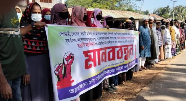 বাউফলে ইউপি চেয়ারম্যানের বিরুদ্ধে মানববন্ধন