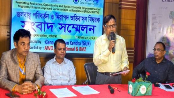 ওবাইদুল ইসলাম, গাইবান্ধা : গাইবান্ধায় জলবায়ু পরিবর্তন ও নিরাপদ অভিবাসন বিষয়ে স্থানীয় গণমাধ্যম কর্মীদের সাথে মতবিমিয় সভা অনুষ্ঠিত হয়েছে। আজ সকালে বেসরকারি উন্নয়ন সংস্থা গণ উন্নয়ন কেন্দ্রের আয়োজনে এ ডাবলু