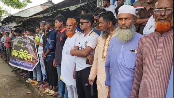 গাজীপুর প্রতিনিধি : গাজীপুরের শ্রীপুর পৌর এলাকার ৫নং ওয়ার্ডের ১ নং সিএন্ডবি বাজারে সন্ত্রাস, চাঁদাবাজ, দখলবাজ ও আওয়ামী লীগের বিরুদ্ধে মানববন্ধন ও প্রতিবাদ সমাবেশ করেছেন স্থানীয় ব্যবসায়ী ও সচেতন নাগরিকরা।
