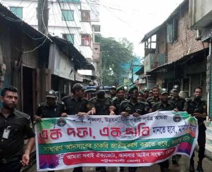 পটুয়াখালীতে আনসার সদস্য চাকুরী জাতীয়করনের দাবীতে মানববন্ধন কর্মসূচি পালন