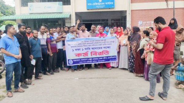চাকুরী জাতীয়করণের ১ দফা দাবিতে জয়পুরহাটে নকল নবীশের কর্ম বিরতি