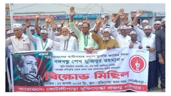 কোটালীপাড়ায় বীর মুক্তিযোদ্ধাদের উদ্যোগে বিক্ষোভ মিছিল