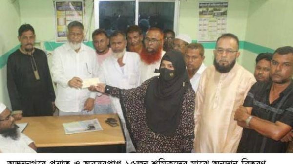 অভয়নগরে প্রয়াত ও অবসরপ্রাপ্ত ১৫জন শ্রমিকদের মাঝে অনুদান বিতরণ