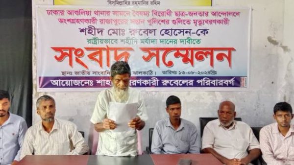 বৈষম্যবিরোধী ছাত্র আন্দোলনে পুলিশের গুলিতে নিহত রুবেলে’র শহিদী মর্যাদা চেয়ে পরিবারের সংবাদ সম্মেলন