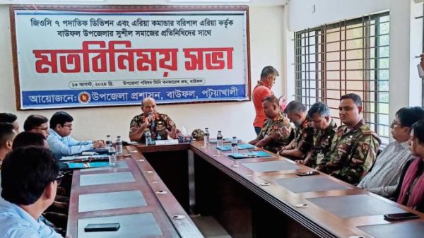 বাউফলে সেনাবাহিনীর উর্ধতন কর্মকর্তাদের সাথে সুশীল সমাজের মতবিনিময়
