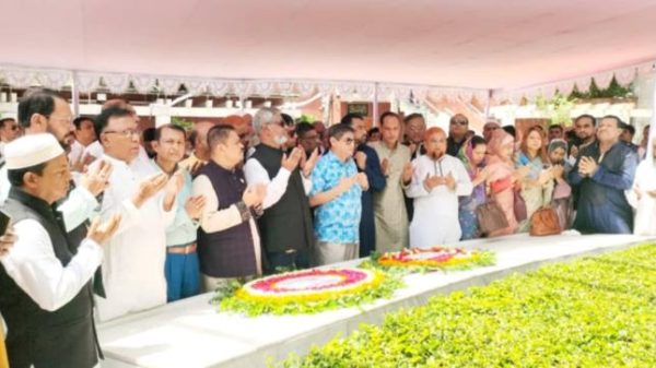 বঙ্গবন্ধুর সমাধিতে গৃহায়ণ ও গণপূর্ত মন্ত্রী র. আ. ম উবায়দুল মোক্তাদির চৌধুরীর শ্রদ্ধা
