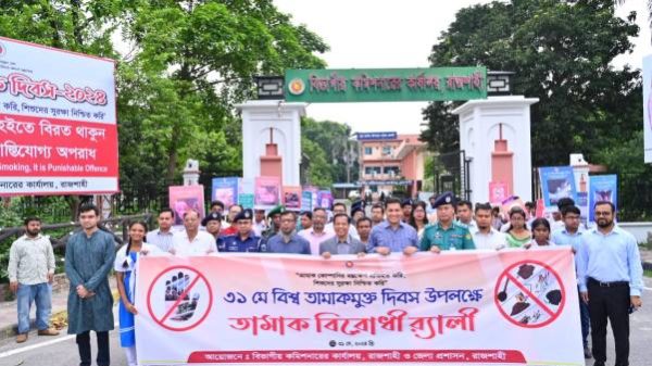 রাজশাহী প্রতিনিধি : রাজশাহী বিভাগীয় ও জেলা প্রশাসনের আয়োজনে জনসচেতনতা বৃদ্ধির লক্ষ্যে বিশ্ব তামাকমুক্ত দিবস উদযাপিত হয়েছে। সেই লক্ষ্যে ৩১ মে শুক্রবার সকাল ৯:৩০টায় বিভাগীয় কমিশনারের কার্যালয়ের সম্মেলন কক্ষে আলোচনা