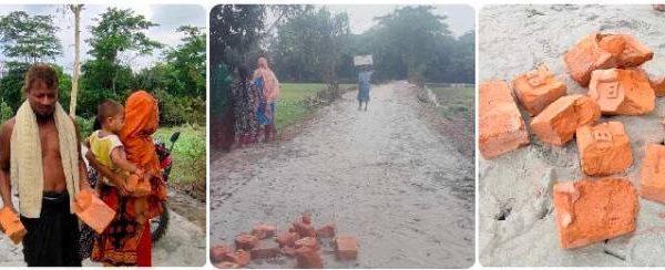 দুমকিতে নিম্নমানের ইট দিয়ে চলছে রাস্তার কাজ
