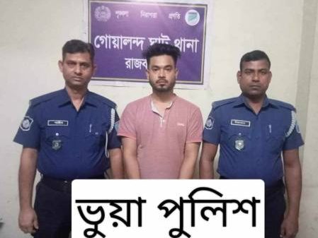 অরুণ রাহা, রাজবাড়ী : রাজবাড়ীর দৌলতদিয়া ঘাট থেকে সুমন খন্দকার নামে এক ভুয়া পুলিশকে আটক করেছে গোয়ালন্দ ঘাট থানা পুলিশ। সোমবার সকালে এক প্রেস ব্রিফিংয়ে এ তথ্য জানান গোয়ালন্দ ঘাট