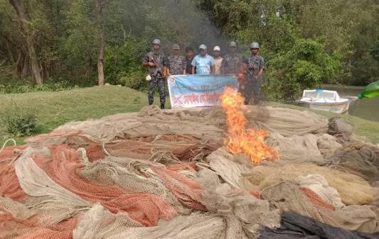 পটুয়াখালীর তেতুলিয়া নদীতে অভিযানে ১২ লক্ষ টাকার জাল জব্দ
