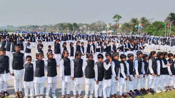 টুঙ্গিপাড়ায় ৭১৪ শিক্ষার্থীর কণ্ঠে উচ্চারিত বঙ্গবন্ধুর ঐতিহাসিক ভাষণ