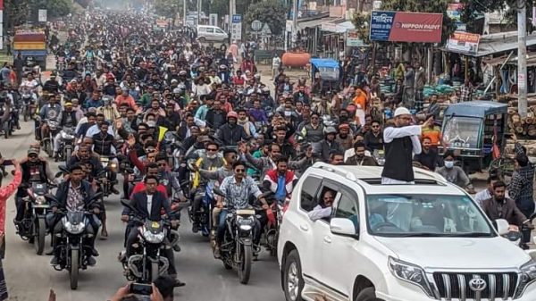কালাইয়ে হাজারো নেতাকর্মী নিয়ে মোটরসাইকেল শোডাউন উপজেলা চেয়ারম্যান প্রার্থীর