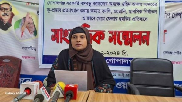 গোপালগঞ্জে সরকারি বঙ্গবন্ধু কলেজের অধ্যক্ষ ওহিদ আলম লস্করের বিরুদ্ধে ভুক্তভোগী এক নারী কর্মচারীর সংবাদ সম্মেলন