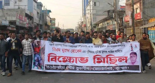 মোঃ কামাল হোসেন, অভয়নগর : যশোরের অভয়নগরে নওয়াপাড়া পৌরসভার ৪ নম্বর ওয়ার্ড যুবলীগের সাধারণ সম্পাদক মুরাদ হোসেন (২৮) কে কুপিয়ে হত্যার প্রতিবাদে লাশ নিয়ে বিক্ষোভ মিছিল করেছে নওয়াপাড়া পৌর যুবলীগ।