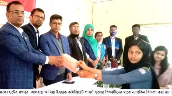 লখপুর আলহাজ্ব আম্বিয়া ইছহাক কলিজিয়েট গালর্স স্কুলে ন্যাপকিন বিতরণ