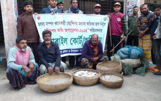 বাকেরগঞ্জে নিষেধাজ্ঞা অমান্য করে ঝাটকা ইলিশ ধারায় ৩ জেলেকে জরিমানা