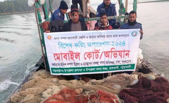 কহিনুর বেগম, পটুয়াখালী : পটুয়াখালী জেলার রাঙ্গাবালী উপজেলায় বিশেষ কম্বিং অপারেশন ২০২৪ উপলক্ষে জেলা মৎস্য কর্মকর্তা মোঃ কামরুল ইসলাম মহোদয়ের সার্বিক দিক নির্দেশনায় রাঙ্গাবালী উপজেলা মৎস্য দপ্তর ও রাঙ্গাবালী থানা