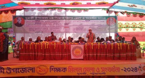 কহিনুর বেগম, পটুয়াখালী : পটুয়াখালী জেলার দুমকি উপজেলায় সরকারি-বেসরকারি স্কুল, কলেজ ও মাদ্রাসা শিক্ষক-কর্মচারীদের মিলন মেলার নামে বিশেষ ব্যক্তিত্রয়কে গণসংবর্ধনা প্রদান করা হয়েছে। উপজেলা শিক্ষা বিভাগের আয়োজনে অনুষ্ঠিত এ শিক্ষক মিলন
