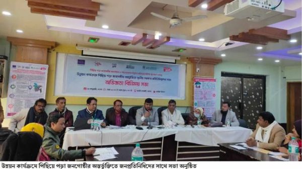 মোঃ কামাল হোসেন, অভয়নগর : উন্নয়ন কার্যক্রমে পিছিয়ে পড়া জনগোষ্ঠীর অন্তর্ভুক্তিতে জনপ্রতিনিধিদের সাথে সভা অনুষ্ঠিত হয়েছে। নাগরিক উদ্যোগের আয়োজনে যশোর জয়তী সোসাইটির মিলনায়তনে বৃহস্পতিবার (২৫শে জানুয়ারি) উন্নয়ন কার্যক্রমে পিছিয়ে পড়া