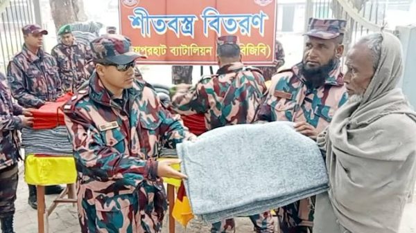 ফারহানা আক্তার, জয়পুরহাট : জয়পুরহাটের পাঁচবিবি উপজেলার হাটখোলা সীমান্ত এলাকার ২’শতাধিক গরীব অসহায় পরিবারের মাঝে শীতের কম্বল বিতরণ করা হয়েছে। বাংলাদেশ বর্ডার গার্ড (বিজিবি) জয়পুরহাট ২০ ব্যাটালিয়নের পক্ষ থেকে শীতের