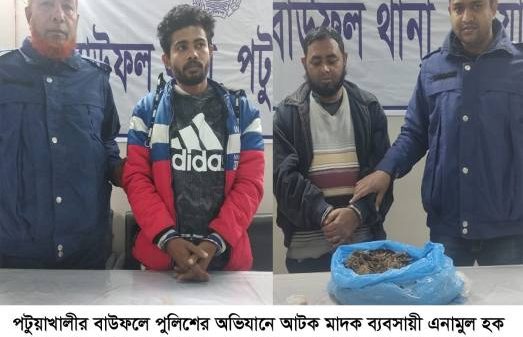 কহিনুর বেগম, পটুয়াখালী : পটুয়াখালী জেলার বাউফল উপজেলায় পৃথেক পৃথেক অভিযান চালিয়ে দুই মাদক ব্যবসায়ীকে আটক করেছে পুলিশ। সংশ্লিষ্ট সূত্র জানায়, রবিবার উপজেলার ২নং কালিশুরী ইউনিয়নের ৪ নং ওয়ার্ডের নিজ