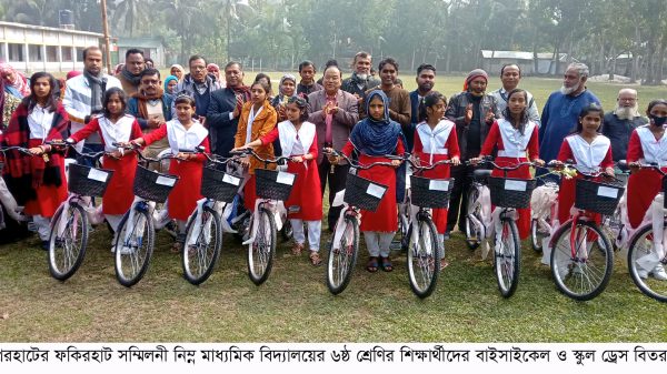 ফকিরহাটে স্কুল শিক্ষার্থীদের বাইসাইকেল ও ড্রেস বিতরণ