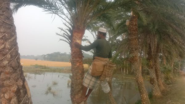 পটুয়াখালীতে মুখরোচক খেজুর রস আহরণে ব্যস্ত গাছীরা