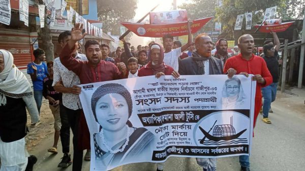 গাজীপুর-৩ আসনের নৌকার প্রার্থীর পক্ষে ভোট চেয়ে যুবলীগের প্রচার-প্রচারণা ও পদযাত্রা