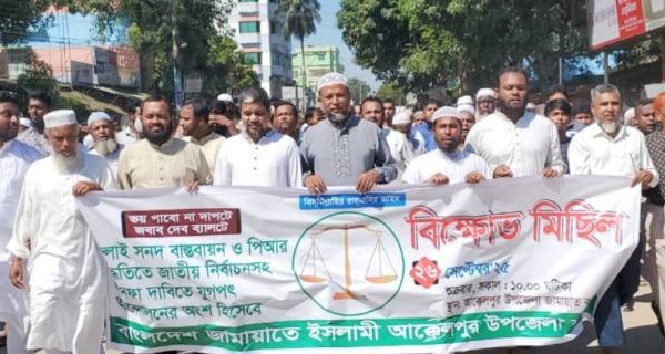 ফারহানা আক্তার, জয়পুরহাট : বাংলাদেশ জামায়াতে ইসলামীর কেন্দ্র ঘোষিত কর্মসূচির অংশ হিসেবে পাঁচ দফা দাবি আদায়ের লক্ষ্যে জয়পুরহাটের আক্কেলপুরে বিক্ষোভ মিছিল ও সমাবেশ অনুষ্ঠিত হয়েছে। শুক্রবার দুপুরে আক্কেলপুর উপজেলা জামায়াতের