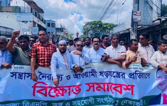 শ্রীপুরে আওয়ামী সন্ত্রাস-নৈরাজ্য ও ষড়যন্ত্রের প্রতিবাদে বিএনপির বিক্ষোভ ও সমাবেশ