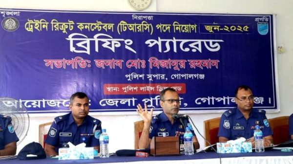 গোপালগঞ্জে ট্রেইনি রিক্রুট কনস্টেবল পদে নিয়োগ-২০২৫ সংক্রান্তে ব্রিফিং প্যারেড অনুষ্ঠিত